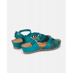 El modelo MONACO 185 en azul, un clásico con detalles animal print para salir de lo habitual. Su hebilla dorada facilita el calce del mismo y aporta luz al diseño. Cuenta con una suela de 3,5 cm y una plantilla antideslizante que garantiza el agarre del pie. Está elaborada de manera artesanal en España, material de piel y uso de tintes vegetales respetuosos con el medio ambiente.