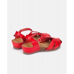 La sandalia MONACO 187 en rojo, similar al resto de los modelos de su línea pero con una tira dentral que viste el empeine y aporta un toque diferente. Cuenta con una suela de 3,5 cm y una plantilla antideslizante que garantiza el agarre del pie. Está elaborada de manera artesanal en España, material de piel y uso de tintes vegetales respetuosos con el medio ambiente.