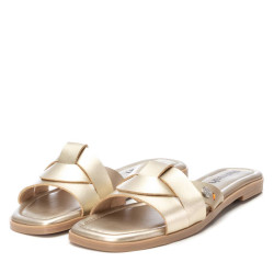 Sandalia de mujer, de la marca Refresh. Fabricada en material que imita la piel con acabado metalizado. Diseño tipo pala entrelazada. Cómoda planta acolchada. Suela flexible de goma antideslizante. Este modelo ha obtenido el certificado vegano por la organización mundial PETA (Organización de los derechos de los animales).