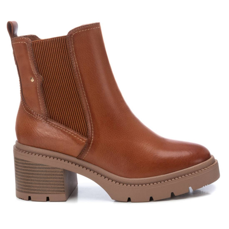 Botín de mujer, de la marca Carmela. Fabricado en piel de alta calidad. Cierre lateral mediante cremallera y elástico para un mayor calce. Tirador trasero para facilitar la puesta. Suela gruesa y dentada antideslizante.