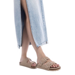 Sandalia de mujer, de la marca Refresh. Fabricada en serraje. Pala ancha de doble tira con hebilla para ajustar al pie. Cómoda planta tipo bios. Suena de goma canalada antideslizante.