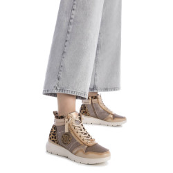 Botín de mujer, de la marca Carmela. Fabricado en piel de alta calidad. Cierre lateral con cremallera y cordones. Detalles laterales con efecto metalizado. Tirador trasero para facilitar la puesta. Suela antideslizante. Plantilla extraíble.