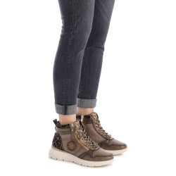 Botín de mujer, de la marca Carmela. Fabricado en piel de alta calidad. Cierre lateral con cremallera y cordones. Detalles laterales con efecto metalizado. Tirador trasero para facilitar la puesta. Suela antideslizante. Plantilla extraíble.