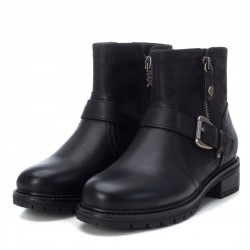 Botín de niña estilo motero, con suela de goma de 4 cm, de Xti kids. Cremallera interior. Fabricado con mezcla de materiales textil y sintetico que junto a los detalles de cremallera y hebilla lo hacen un basico perfecto. Este modelo ha obtenido el certificado vegano por la organización mundial PETA (Organización de los derechos de los animales).