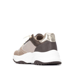 Zapatilla de mujer de la marca Xti, fabricada en material textil combinado con material que imita la piel, ofreciendo un diseño moderno y versátil. Su suela estilo urbano proporciona comodidad y soporte, mientras que el detalle metalizado en el talón le da un toque elegante. Con cordones para un ajuste personalizado, es perfecta para un look casual y a la moda.