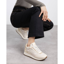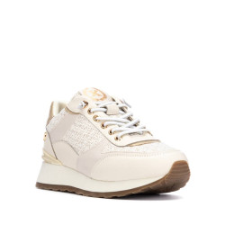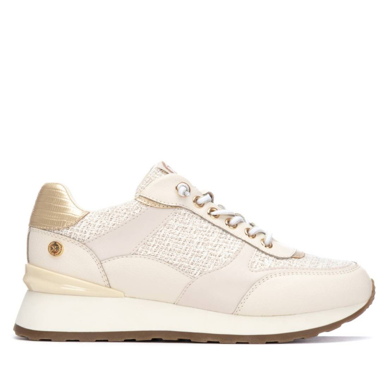 Zapatilla de mujer de la marca Xti, fabricada en material textil combinado con material que imita la piel, con detalles metalizados que aportan un toque elegante y moderno. Cuenta con cordones para un ajuste personalizado y una suela deportiva moderna, diseñada para brindar comodidad y soporte. Perfecta para quienes buscan estilo y funcionalidad en su calzado diario.Con plantilla extraíble. Este modelo ha obtenido el certificado vegano por la organización mundial PETA (Organización de los derechos de los animales).