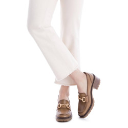 mocasin de mujer, de la marca Xti. Fabricada en material que imita la piel con bonito detalle metálico. Cómodo tacón ancho de 6 cm, con el que podrás caminar durante todo el día. Suela de goma antideslizante. Plantilla extraíble. Este modelo ha obtenido el certificado vegano por la organización mundial PETA (Organización de los derechos de los animales).