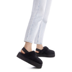 Zapatilla de mujer, de la marca Xti, confeccionada en suave antelina. Estilo tipo australiana, con goma para una mejor sujeción y forrada con pelo, perfecta para los días más fríos del invierno. Este modelo ha obtenido el certificado vegano por la organización mundial PETA (Organización de los derechos de los animales).