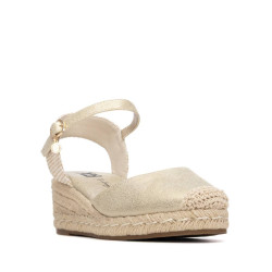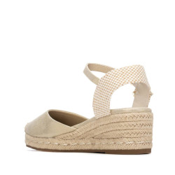 Alpargata estilo valenciana de mujer, de la marca Xti. Fabricada en antelina y material textil en el talón. Sujeción con hebilla. Cuña baja de yute con suela antideslizante. Este modelo ha obtenido el certificado vegano por la organización mundial PETA (Organización de los derechos de los animales).