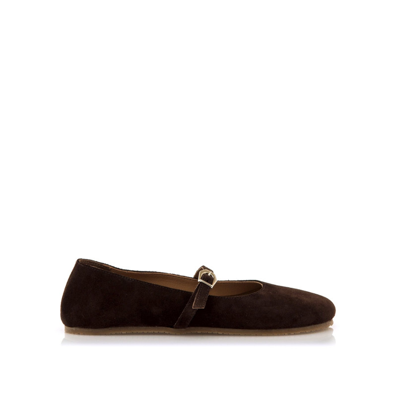 Bailarina barefoot de color marrón moka para mujer de la marca Mtng, modelo Free Mia de estilo clásico con tira y hebilla ajustable sobre el empeine. Diseñada en serraje de color oscuro que aporta un acabado cálido y natural. Su diseño favorece una sujeción suave y cómoda, ideal para un look sencillo y funcional. Diseñadas y desarrolladas especialmente en colaboración con el Dr. Juanjo López, traumatólogo deportivo, para respetar el desarrollo natural del pie. Se trata de un calzado minimalista que gracias a su puntera ancha, suela totalmente plana (cero drop) y flexibilidad, mejora la anatomía del pie y favorece una mejor posición del mismo. Al estar fabricadas con piel natural, la plantilla puede presentar un aspecto arrugado o irregular en algunas zonas, algo completamente normal que no afecta al uso y que refleja la autenticidad y singularidad del material.