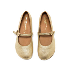 Bailarinas barefoot doradas para mujer, modelo Free Mia de la marca mtng. Con un estilo clásico con un toque de brillo, la tira al empeine con hebilla ajustable proporciona mayor sujeción sin comprometer la libertad. Diseñadas y desarrolladas especialmente en colaboración con el Dr. Juanjo López, traumatólogo deportivo, para respetar el desarrollo natural del pie. Se trata de un calzado minimalista que gracias a su puntera ancha, suela totalmente plana (cero drop) y flexibilidad, mejora la anatomía del pie y favorece una mejor posición del mismo. La plantilla, al estar fabricada con piel natural, puede presentar un aspecto arrugado o irregular en algunas zonas, algo completamente normal que no afecta al uso y que refleja la autenticidad y singularidad del material.