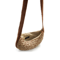 Bolso bandolera de mujer de color beige y marrón de la marca MTNG, modelo Mojito, con diseño de rafia trenzada. La textura entrelazada y el asa de macramé le dan un aire desenfadado y veraniego, ideal para looks informales. Incluye cierre con cremallera y compartimento interior para llevar lo esencial siempre a mano. Una propuesta fresca y cómoda para looks de diario o escapadas de temporada.