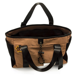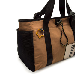 Bolso tote en tono arena para mujer, modelo Noma de MTNG, funcional y urbano con diseño amplio y ligero. Cuenta con doble asa ajustable para llevarlo al hombro o en la mano con comodidad. Su cierre superior con cremallera y cordón ajustable asegura el interior, que es espacioso y permite organizar tus pertenencias con facilidad. Tiene bolsillos laterales de malla para objetos de uso rápido y un detalle decorativo distintivo con etiqueta frontal 'Love Mtng' y un mosquetón en forma de estrella para un toque moderno. Ideal para el día a día gracias a su versatilidad, estilo y practicidad.