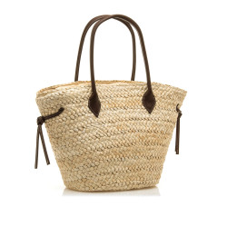Bolso capazo de mujer, modelo Parra de color beige de la marca Mtng. Su forma amplia en estructura tipo cesta con diseño trenzado combina fibras en tono crudo con detalles marrón oscuro en las asas largas y en el bolsillo exterior con tachuelas decorativas. Incluye cierre superior de cremallera y un interior forrado con bolsillo adicional para pequeños objetos. Los laterales llevan tiras ajustables decorativas que completan su estilo fresco. Un bolso espacioso ideal para llevar lo necesario en días de verano.
