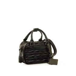 Bolso de color negro para mujer de la marca Mtng, modelo Piper. Su diseño compacto tipo bowling destaca por el panel frontal acolchado con patrón geométrico en relieve, que le aporta textura y personalidad. Incluye doble asa corta y una bandolera regulable para llevarlo al hombro o cruzado, además de un charm en contraste de color kaki. Práctico y moderno, es ideal para acompañar looks diarios con un toque actual.