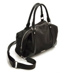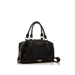 Bolso de color negro para mujer de mtng, modelo Sarai. Su diseño tipo bowling compacto incorpora doble asa de mano y bandolera ajustable, con detalles metálicos en plata que aportan un acabado moderno y funcional. El interior espacioso y el cierre con cremallera permiten mantener todo organizado y seguro en el día a día. Un modelo ligero que combina texturas, ideal para acompañarte tanto en planes casuales como en uso diario.