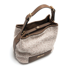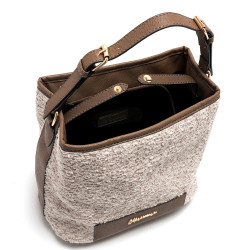 Bolso tote de color hielo para mujer, modelo Toba de la marca Mariamare. Este diseño combina cuerpo tipo borreguillo con detalles en contraste de color marrón, creando un look cálido y actual perfecto para temporadas frías. El asa corta con hebillas metálicas doradas permite llevarlo cómodamente al hombro, y su interior espacioso con cierre superior lo hace ideal para el día a día. Un complemento funcional que aporta textura y un toque diferente a tus looks cotidianos.
