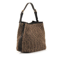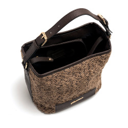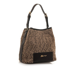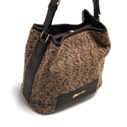 Bolso tipo tote de color taupe para mujer, modelo Toba de la marca Mariamare con diseño en tejido boucle que aporta textura y calidez visual. Cuenta con asa corta para llevar cómodamente al hombro y un diseño estructurado pero flexible que se adapta al uso diario. El detalle del logo metálico en dorado sobre base moka lisa destaca en el frontal, añadiendo identidad a un modelo pensado para quienes buscan funcionalidad con un estilo elegante y actual.