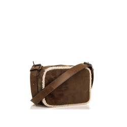 Bolso bandolera de color cuero para mujer, modelo Wolly de mtng con diseño compacto y estructura rectangular. Presenta un acabado envejecido con textura suave y detalles en borreguito de color natural que bordean toda la pieza. Las costuras curvas en el frontal aportan un toque diferenciador y actual. Incorpora cierre de cremallera en la parte superior y correa ajustable para llevarlo cómodamente cruzado o al hombro. Perfecto para quienes buscan un bolso ligero y funcional para los meses fríos.
