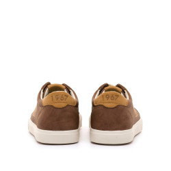 Zapatillas de color cuero para hombre de la marca Mtng, modelo Aria, con diseño casual y estilo minimalista. Incorporan detalles en camel en el talón y la lengüeta, junto al logo lateral grabado que mantiene la estética sencilla del modelo. Los cordones blancos y la suela a tono aportan un contraste sutil, ideal para quienes buscan un calzado versátil y cómodo. Con certificado VEGANO sellado por INESCOP, el cual garantiza que la naturaleza química principal del material no se corresponde con fibras de origen animal.