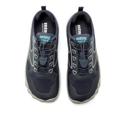 Zapatillas barefoot de color azul marino para hombre de la marca Mtng, modelo Free Atlas tipo trekking. Su diseño técnico con cierre elástico y su upper de malla y refuerzos sintéticos aportan transpirabilidad y sujeción. La suela texturizada imita el contorno de los dedos. Diseñadas y desarrolladas especialmente en colaboración con el Dr. Juanjo López, traumatólogo deportivo, para respetar el desarrollo natural del pie. Se trata de un calzado minimalista que gracias a su puntera ancha, suela totalmente plana (cero drop) y flexibilidad, mejora la anatomía del pie y favorece una mejor posición del mismo. Con certificado VEGANO sellado por INESCOP, el cual garantiza que la naturaleza química principal del material no se corresponde con fibras de origen animal.