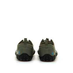 Zapatillas barefoot de color verde para hombre, modelo Free Atlas de la marca MTNG. El cierre con cordón elástico facilita un ajuste rápido y seguro, cuyo extremo se fija mediante un práctico cierre adherente. La parte superior combina tejido de malla con refuerzos sintéticos que aportan estructura sin comprometer la flexibilidad. La puntera ancha imita en su exterior la forma natural de los dedos. La suela de goma negra, totalmente plana (zero drop), presenta un diseño con relieve que mejora la tracción y acompaña los movimientos del pie, proporcionando estabilidad y confort en cada paso. Diseñadas y desarrolladas especialmente en colaboración con el Dr. Juanjo López, traumatólogo deportivo, para respetar el desarrollo natural del pie. Se trata de un calzado minimalista que gracias a su puntera ancha, suela totalmente plana y flexibilidad, mejora la anatomía del pie y favorece una mejor posición del mismo. Con certificado VEGANO sellado por INESCOP, el cual garantiza que la naturaleza química principal del material no se corresponde con fibras de origen animal.