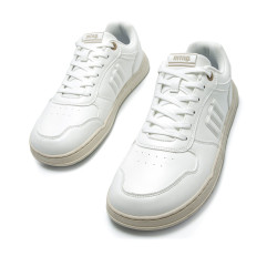 Zapatillas blancas para hombre modelo Free Miami de Mtng. Estas zapatillas destacan por su suela de color beige que complementa el blanco del resto del calzado. Diseñadas y desarrolladas especialmente en colaboración con el Dr. Juanjo López, traumatólogo deportivo, para respetar el desarrollo natural del pie. Se trata de un calzado minimalista que gracias a su puntera ancha, suela totalmente plana (cero drop) y flexibilidad, mejora la anatomía del pie y favorece una mejor posición del mismo. Se vende con una plantilla de transición para hacer el cambio de calzado convencional a minimalista de manera progresiva.. Certificado por INESCOP como vegano, garantiza que en su fabricación no se han utilizado ningún material de origen animal.