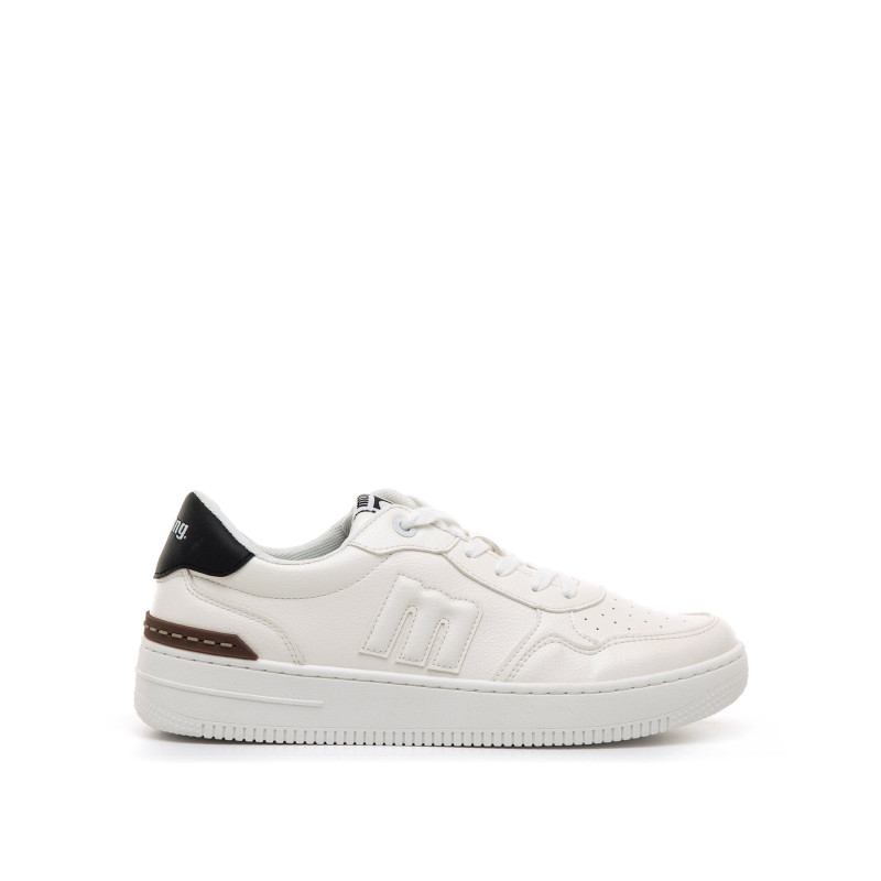 Zapatillas blancas para hombre de la marca Mtng, modelo Gravity, con estilo urbano y diseño de inspiración deportiva. Incluyen detalles en negro y marrón en la parte trasera que aportan contraste sin perder la estética limpia del conjunto. El logo lateral en relieve y la puntera perforada añaden personalidad y funcionalidad al diseño. La suela elevada de color uniforme ofrece una pisada cómoda. Perfectas para quienes buscan un calzado versátil y actual para combinar con looks informales. Con certificado VEGANO sellado por INESCOP, el cual garantiza que la naturaleza química principal del material no se corresponde con fibras de origen animal.