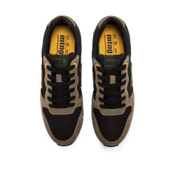 Zapatillas negras para hombre, modelo Joggo Classic de Mtng. Este modelo destaca por sus paneles grises y sus detalles en tonos verdes y naranjas, que añaden un toque dinámico y moderno. La combinación de colores, junto con su suela de goma, asegura un look versátil y fácil de combinar. Incorporan una plantilla de 4 mm con tecnología Starfit, estas zapatillas ofrecen una pisada suave y cómoda. Su espuma Comfort Foam aporta un acolchado extra, ideal para disfrutar de un confort prolongado en cada uso. Con certificado VEGANO sellado por INESCOP, el cual garantiza que la naturaleza química principal del material no se corresponde con fibras de origen animal.