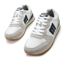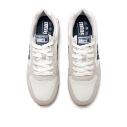 Zapatillas de estilo retro running para hombre de la marca Mtng, modelo Joggo Classic de color blanco. Su diseño combina una base clara con detalles en gris y azul marino que aportan contraste y definición. El logo en relieve en el lateral y la suela de goma color caramelo completan un look deportivo con inspiración vintage. Equipadas con plantillas con tecnología Starfit, que mejoran la comodidad en cada paso. Con certificado VEGANO sellado por INESCOP, el cual garantiza que la naturaleza química principal del material no se corresponde con fibras de origen animal.