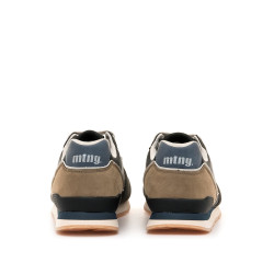 Zapatillas de color negro y beige para hombre de la marca mtng, modelo Joggo. Este diseño combina un estilo urbano con un aire deportivo. La parte superior mezcla diferentes texturas con detalles en contraste en caqui, el logo moka en el lateral y el talón en azul marino, aportando un toque distintivo. Su suela ligera y sus plantillas con tecnología Starfit, mejoran la comodidad en cada paso, ideal para acompañarte en cualquier plan informal sin renunciar al estilo. Con certificado VEGANO sellado por INESCOP, el cual garantiza que la naturaleza química principal del material no se corresponde con fibras de origen animal.