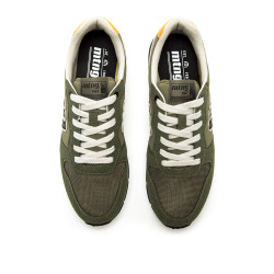 Zapatillas de color verde kaki para hombre de la marca Mtng, modelo Joggo Classic, de estilo retro deportivo. Presenta una combinación de paneles en distintas texturas con detalles en contraste como el talón amarillo y el logo lateral en negro con borde blanco. El diseño incluye cordones blancos y suela bicolor con base negra. Equipadas con plantillas con tecnología Starfit, que mejoran la comodidad en cada paso. Su estética versátil y cómoda la convierte en una opción ideal para looks relajados con un toque vintage. Con certificado VEGANO sellado por INESCOP, el cual garantiza que la naturaleza química principal del material no se corresponde con fibras de origen animal.