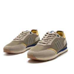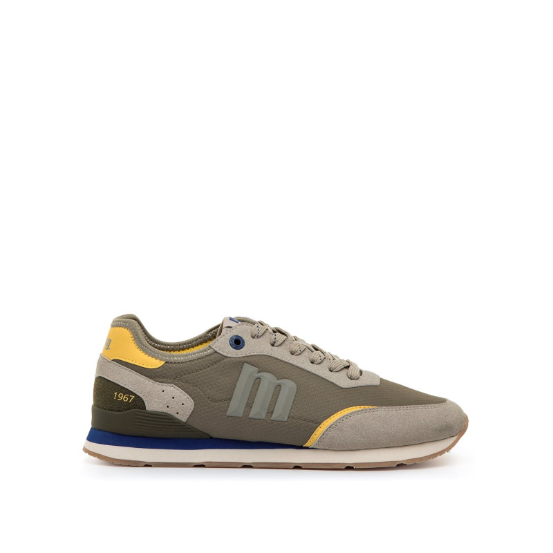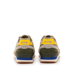 Zapatillas de color verde kaki para hombre de Mtng, modelo Joggo Classic de estilo urbano. Este diseño combina paneles y texturas en tonos tierra con detalles de color azul y amarillo que aportan un toque distintivo. Incluye el logo lateral en relieve, talón con refuerzo y suela bicolor con base de goma. Su silueta clásica tipo running junto a sus plantillas con tecnología Starfit, lo convierten en un modelo que asegura comodidad en cada paso. Con certificado VEGANO sellado por INESCOP, el cual garantiza que la naturaleza química principal del material no se corresponde con fibras de origen animal.