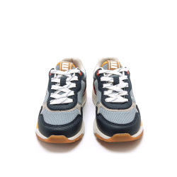 Zapatilla deportiva de color azul con detalles grises, rojos y camel para niño, modelo Compact de la marca Mtng, estilo retro-running. Este diseño combina malla transpirable con refuerzos sintéticos para una mayor resistencia y comodidad. La suela gruesa dentada con tecnología Extralight aporta ligereza, mientras que sus plantillas Starfit suman comodidad a cada paso. El cierre mixto de cordones elásticos y tira adhesiva facilita el calce, fomentando la autonomía. Con certificado VEGANO sellado por INESCOP, el cual garantiza que la naturaleza química principal del material no se corresponde con fibras de origen animal.