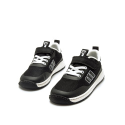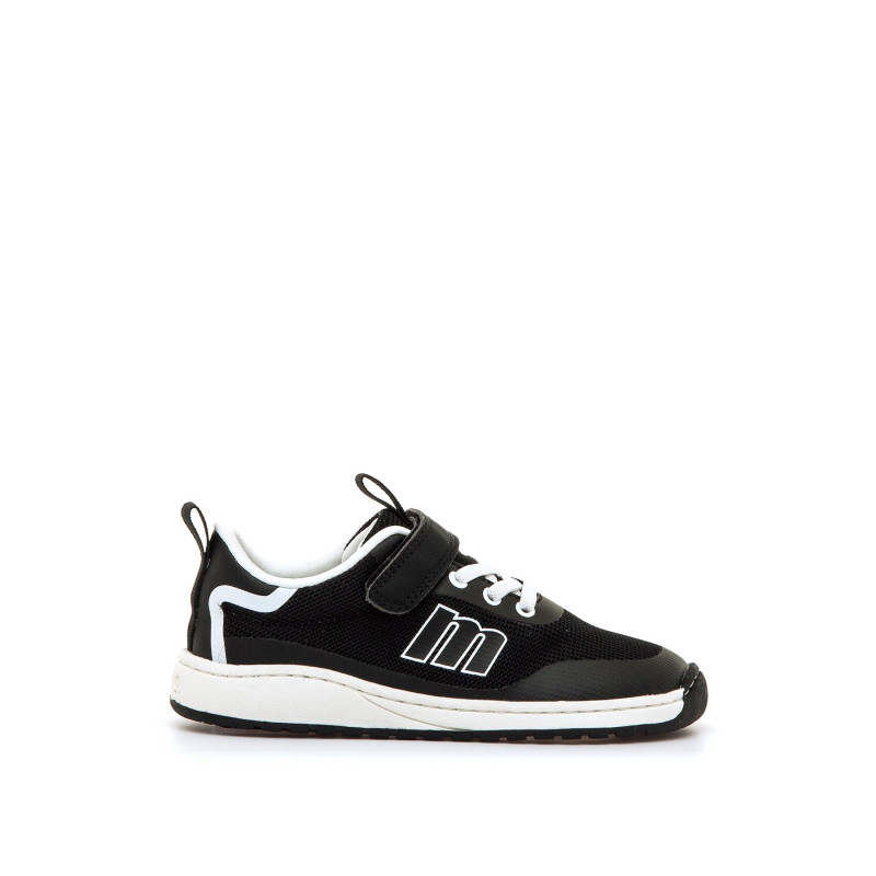 Zapatillas barefoot lavables de color negro para niños de la marca mtng, modelo Free de estilo deportivo. Combina una base de rejilla con refuerzos en zonas clave para una mayor resistencia. El cierre adherente junto con los cordones blancos facilita el ajuste. Cuenta con tiradores en lengüeta y talón que hacen más fácil el calce. Diseñada y desarrollada especialmente en colaboración con el Dr. Juanjo López, traumatólogo deportivo e infantil, para respetar el desarrollo natural del pie del niño y la niña. Gracias a su puntera ancha permite el libre movimiento de los dedos dentro del zapato. Las plantillas extraíbles facilitan comprobar si la talla del calzado es la correcta para tu hijo. Además, su fácil apertura facilita que el niño pueda descalzarse y calzarse de forma autónoma. Con certificado VEGANO sellado por INESCOP, el cual garantiza que la naturaleza química principal del material no se corresponde con fibras de origen animal.