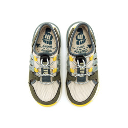 Sandalia deportiva de color verde kaki con detalles en blanco, azul y amarillo para niño, modelo Free de la marca Mtng. Su diseño combina zonas abiertas que favorecen la ventilación con un sistema de ajuste elástico con tope, que proporciona autonomía y sujeción. Diseñado y desarrollado especialmente en colaboración con el Dr. Juanjo López, traumatólogo deportivo e infantil, para respetar el desarrollo natural del pie del niño y la niña. Gracias a su puntera ancha permite el libre movimiento de los dedos dentro del zapato. Las plantillas extraíbles facilitan comprobar si la talla del calzado es la correcta para tu hijo. Además, su fácil apertura facilita que el niño pueda descalzarse y calzarse de forma autónoma. Con certificado VEGANO sellado por INESCOP, el cual garantiza que la naturaleza química principal del material no se corresponde con fibras de origen animal.