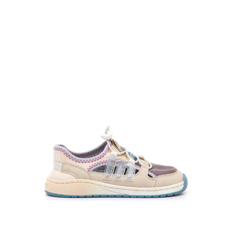 Zapatillas barefoot para niña de la marca Mtng, modelo Free de color beige con detalles malva y azul, de estilo casual con aperturas laterales. El cierre de cordón elástico con tope facilita el ajuste. Las costuras visibles y los detalles combinados en malla y piezas sintéticas aportan un look dinámico. Diseñado y desarrollado especialmente en colaboración con el Dr. Juanjo López, traumatólogo deportivo e infantil, para respetar el desarrollo natural del pie del niño y la niña. Gracias a su puntera ancha permite el libre movimiento de los dedos dentro del zapato. Las plantillas extraíbles facilitan comprobar si la talla del calzado es la correcta para tu hijo. Además, su fácil apertura facilita que el niño pueda descalzarse y calzarse de forma autónoma. Con certificado VEGANO sellado por INESCOP, el cual garantiza que la naturaleza química principal del material no se corresponde con fibras de origen animal.