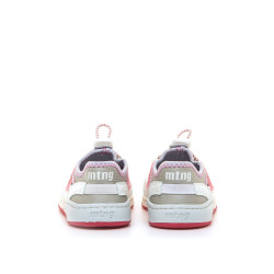 Sandalia tipo cangrejera de color blanco con detalles en gris claro y rosa para niña de la marca Mtng, modelo Free de estilo outdoor. Su diseño presenta una estructura abierta que favorece la transpiración, cordones elásticos ajustables con tope para facilitar el cierre y un refuerzo en la puntera que ofrece mayor protección. Diseñado y desarrollado especialmente en colaboración con el Dr. Juanjo López, traumatólogo deportivo e infantil, para respetar el desarrollo natural del pie del niño y la niña. Gracias a su puntera ancha permite el libre movimiento de los dedos dentro del zapato. Las plantillas extraíbles facilitan comprobar si la talla del calzado es la correcta para tu hijo. Además, su fácil apertura facilita que el niño pueda descalzarse y calzarse de forma autónoma. Con certificado VEGANO sellado por INESCOP, el cual garantiza que la naturaleza química principal del material no se corresponde con fibras de origen animal.