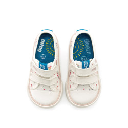 Zapatillas barefoot de color blanco para niña de la marca mtng, modelo Free tipo lona. Diseñada con un divertido estampado de unicornios, cupcakes y arcoíris sobre base clara, ideal para acompañarlas con un toque alegre y colorido. Incorpora doble cierre adherente que facilita el calce. Diseñado y desarrollado especialmente en colaboración con el Dr. Juanjo López, traumatólogo deportivo e infantil, para respetar el desarrollo natural del pie del niño y la niña. Gracias a su puntera ancha permite el libre movimiento de los dedos dentro del zapato. Las plantillas extraíbles facilitan comprobar si la talla del calzado es la correcta para tu hijo. Además, su fácil apertura facilita que el niño pueda descalzarse y calzarse de forma autónoma. Con certificado VEGANO sellado por INESCOP, el cual garantiza que la naturaleza química principal del material no se corresponde con fibras de origen animal.