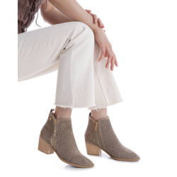 Botín de mujer, de la marca Carmela. Fabricado en serraje de alta calidad. Diseño con calados y metalizados que combinarán perfecto con tus looks de verano. Cierre mediante cremallera lateral. Tacón ancho de 6cms y suela antideslizante.