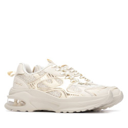 Zapatilla de mujer, de la marca Refresh. Fabricada en material que imita a la piel combinado con rejilla. Cordones regulables. Tirador trasero y delantero para facilitar la puesta. Suela volumen con cámara de aire. Este modelo ha obtenido el certificado vegano por la organización mundial PETA (Organización de los derechos de los animales).