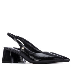 Zapato destalonado de la marca Refresh. Fabricado en material que imita a la piel con acabado charol. Punta afilada y tacón cuadrado medio. Su diseño elegante. Ideal para combinar con looks de oficina o eventos formales sin sacrificar comodidad. Con un cómodo tacón de bloque. Este modelo ha obtenido el certificado vegano por la organización mundial PETA (Organización de los derechos de los animales).