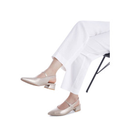 Zapato de la marca Refresh. Fabricado en charol. Con diseño destalonado con tacón bajo y correa para un ajuste perfecto. Una opción versátil y moderna para quienes buscan destacar con discreción y estilo. Este modelo ha obtenido el certificado vegano por la organización mundial PETA (Organización de los derechos de los animales).