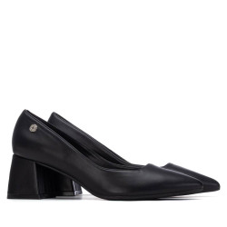 Zapato de la marca Refresh. Fabricado en material que imita a la piel. Elegante zapato destalonado de punta afilada. El tacón ancho de altura media garantiza estabilidad y comodidad, ideal para lucir tanto de día como de noche. Este modelo ha obtenido el certificado vegano por la organización mundial PETA (Organización de los derechos de los animales).