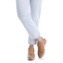 Zapatilla de mujer, de la marca Refresh. Fabricada en material que imita a la piel decorada con troquel. Cordones regulables al tono. Zapatilla casual para combinar con los mejores looks de esta temporada. Este modelo ha obtenido el certificado vegano por la organización mundial PETA (Organización de los derechos de los animales).