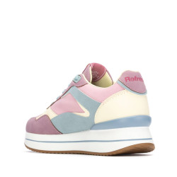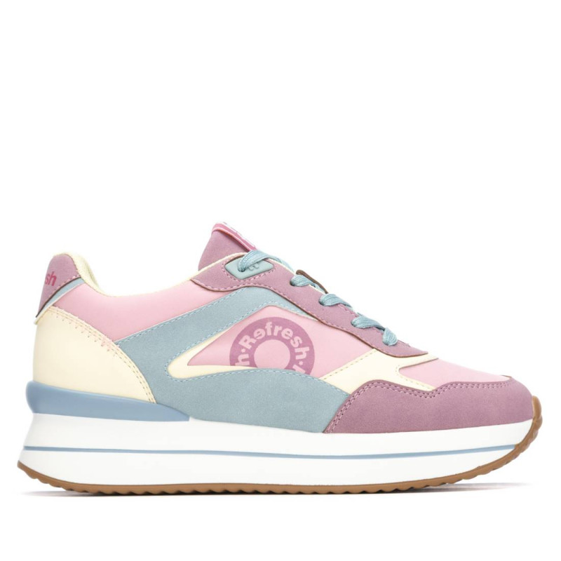 Zapatilla de mujer, de la marca Refresh. Fabricada en material que imita a la piel combinado con nylon. Cordones regulables. Piso volumen con suela de goma a contraste. Este modelo ha obtenido el certificado vegano por la organización mundial PETA (Organización de los derechos de los animales).