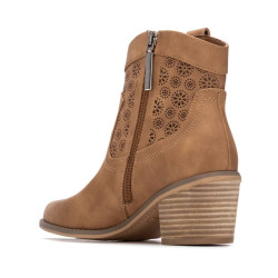 Botín de mujer, marca Refresh. Fabricado en material que imita a la piel. Troquel decorativo en lateral. Cierre mediante cremallera interior. Tirador lateral decorativo con logo de la marca. Este modelo ha obtenido el certificado vegano por la organización mundial PETA (Organización de los derechos de los animales).