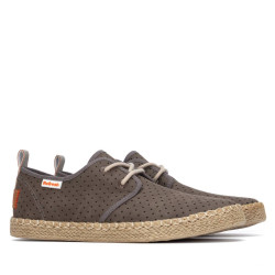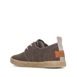 Zapato de hombre, de la marca Refresh. Fabricado en material que imita a la piel con troquel decorativo. Cordones tubulares. Tirador trasero para facilitar la puesta. Piso recubierto de yute con suela de goma. Este modelo ha obtenido el certificado vegano por la organización mundial PETA (Organización de los derechos de los animales).