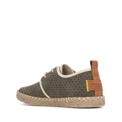 Zapato de hombre, de la marca Refresh. Fabricado en material que imita a la piel con troquel decorativo. Cordones tubulares. Tirador trasero para facilitar la puesta. Piso recubierto de yute con suela de goma. Este modelo ha obtenido el certificado vegano por la organización mundial PETA (Organización de los derechos de los animales).