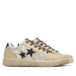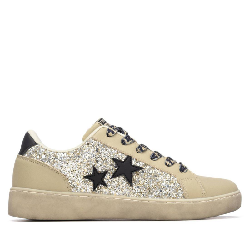 Zapatilla de mujer fabricadas en material que imita la piel con detalles brillantes y formas geométricas. Cierre mediante cordones ajustables con estampado leopardo. Estilo casual pensadas para resistir el uso diario con estilo y comodidad. Versátiles que unen confort, durabilidad, adaptándose tanto a momentos de ocio como a la rutina diaria. Suela tipo casco de goma antideslizante. Este modelo ha obtenido el certificado vegano por la organización mundial PETA (Organización de los derechos de los animales).